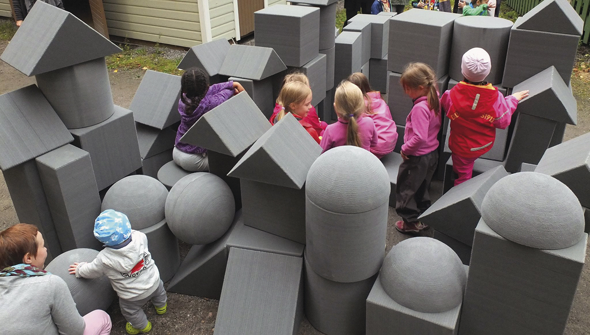 Jättipalikoista voi yhdessä rakentaa vaikka talon. Kuva: Lastentarhamuseo