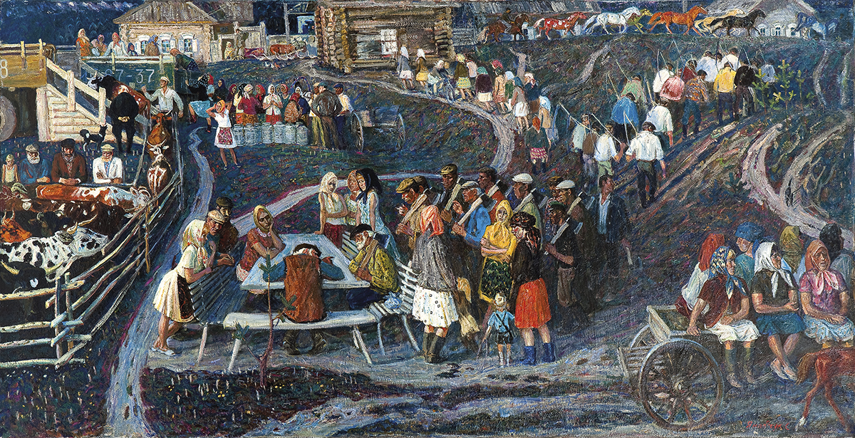 Sergei Jakobtšuk: Työmääräysten jako kolhoosissa 1960-luvulla. Tretjakovin galleria