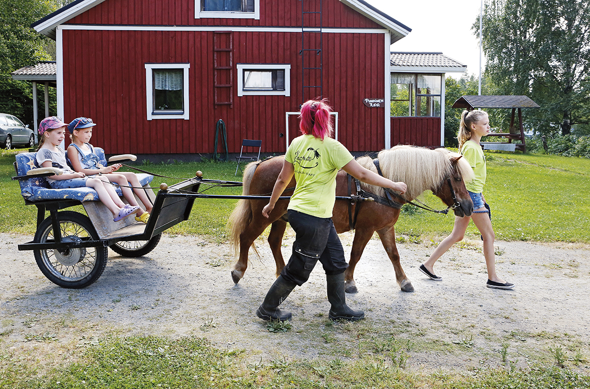 – Possut kieri mudassa ja sitten ne kävi uimassa. Joel piti sylissä kissanpentua! Me ajettiin kärryillä, joita veti poni. Sitä sai ohjastaa. Olisin halunnut olla siellä kauemmin, Sonja huokaa.