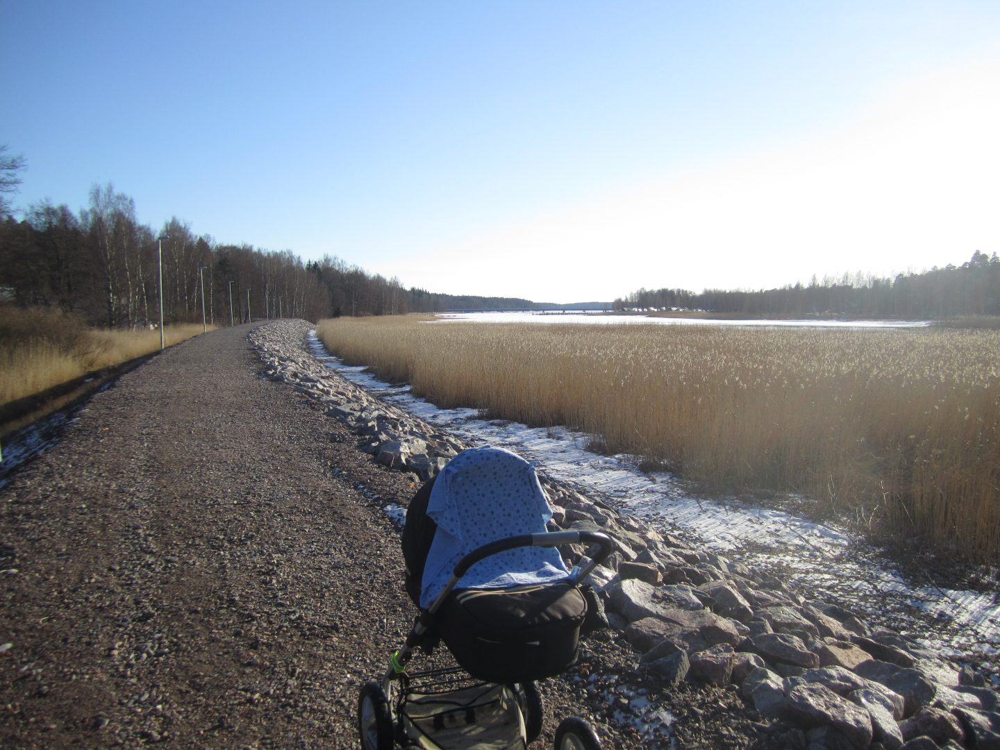 Mies oli juhlimassa varpajaisia, ensin miehet saunoivat ja suuntasivat sitten Tavastialle. Ilta oli aurinkoinen ja me Pepen kanssa teimme pitkän vaunulenkin. Tervetullut tapa olisi juhlia myös uutta äitiä, vauvakutsut voisi järjestää mielestäni ihan hyvin myös syntymän jälkeen.