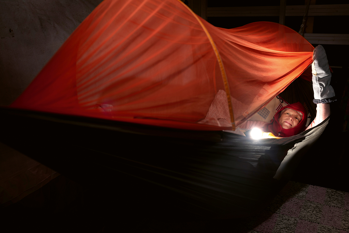 Sirkan läpinäkyvässä riippumatossa on verkko, joka estää ötököitten iholle pääsyn.