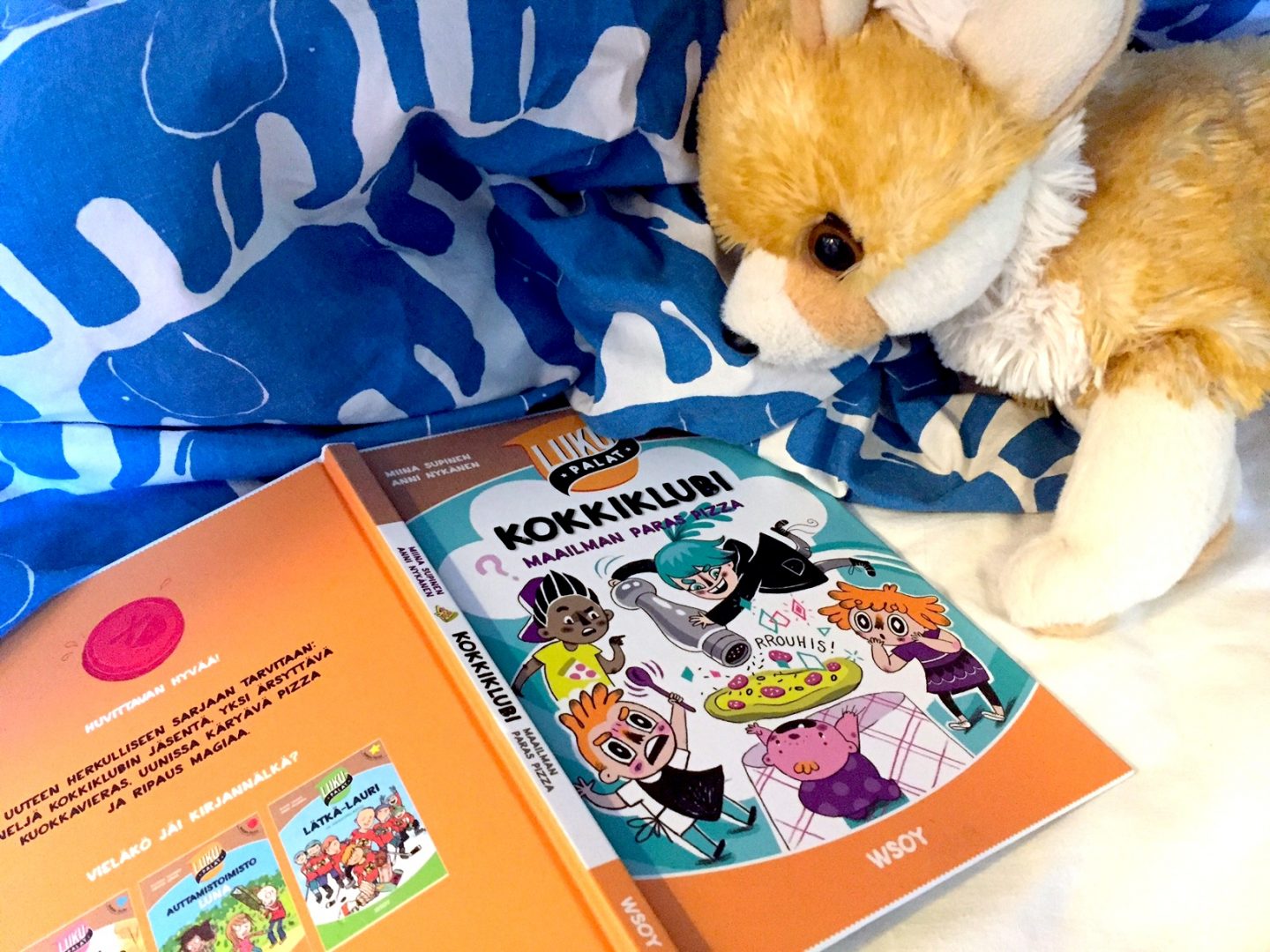 Tänä syksynä perheemme kuopus Karhuntassu aloitti koulun. Hänen luokkansa vieraili kirjastossa viime viikolla. Kirjastovierailun jälkeen kotiin juoksi harvahampainen hulivili repussaan Miina Supisen ja Anni Nykäsen kirja Kokkiklubi: maailman paras pizza.
