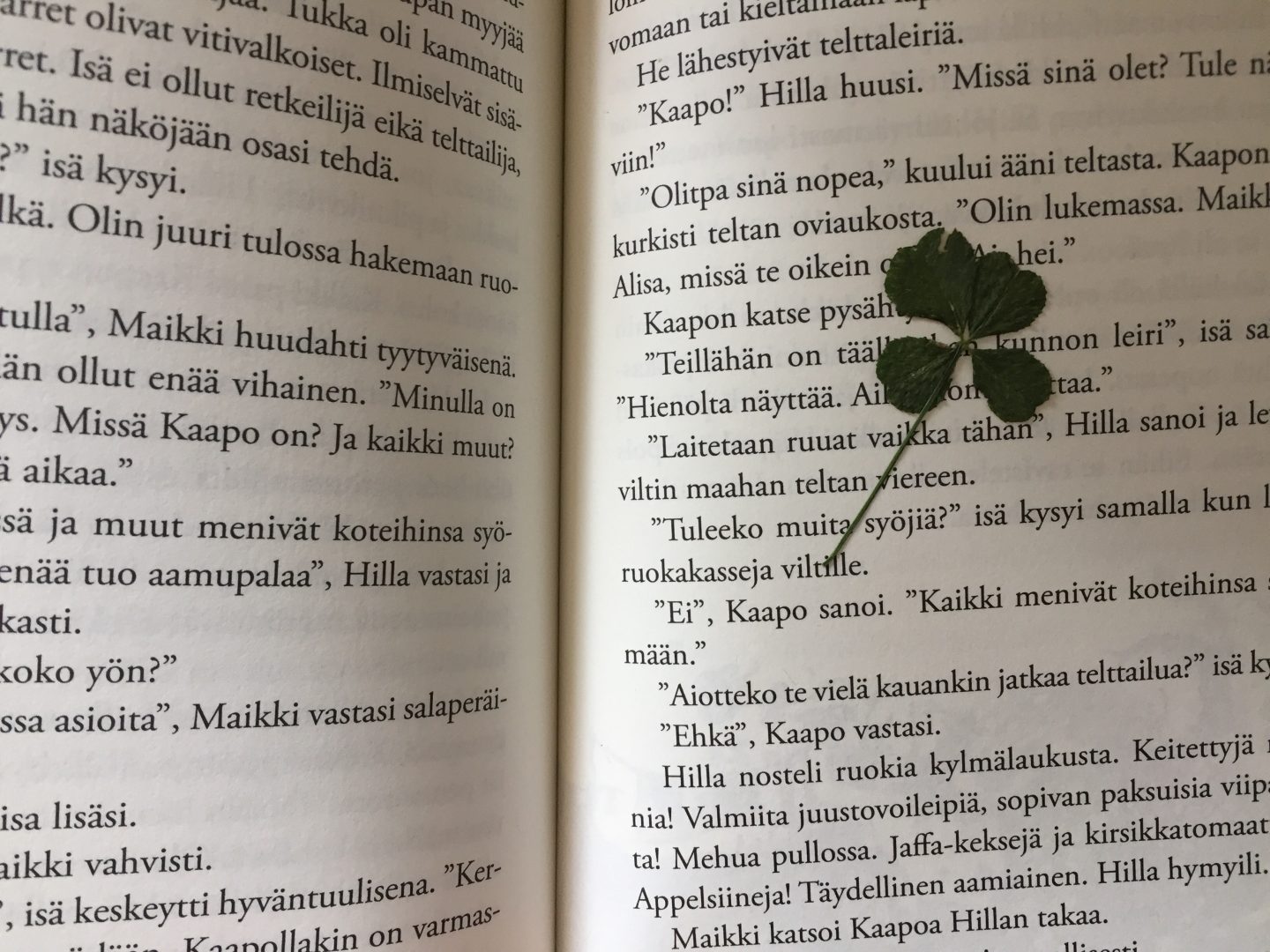 - Kirjan täytyy olla sellainen, joka on luettu vasta hetki sitten. Näin neliapila saa kuivua rauhassa ennen seuraavaa lukukertaa.