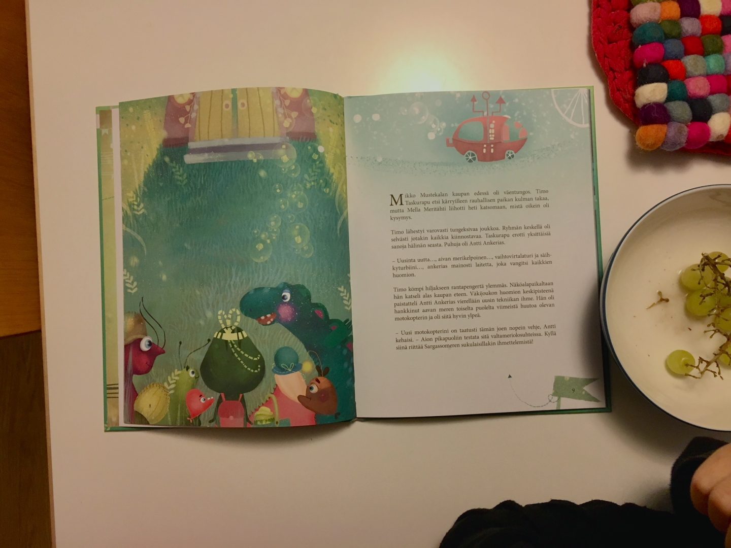 Karhuntassu on innostunut kaloista ja merenalaisesta maailmasta. Viime aikoina olemmekin lukeneet paljon kuvakirjoja, joissa seikkailee kaloja ja äyriäisiä.