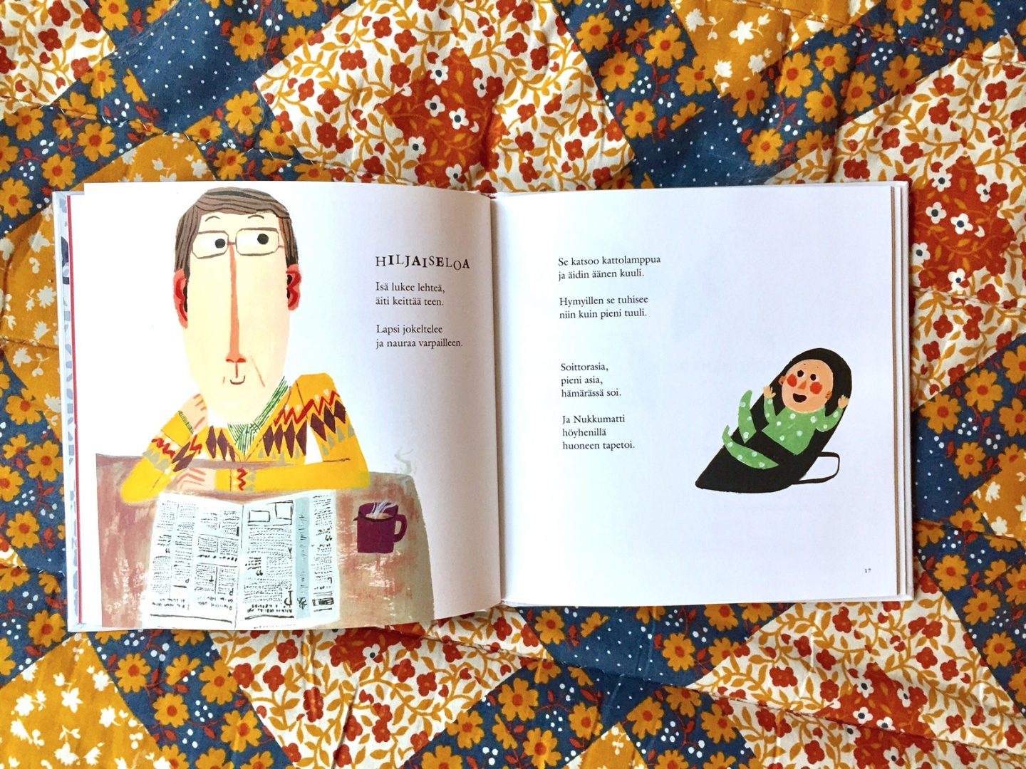 Erityiset pisteet tälle kirjalle annan kuitenkin siitä, että se kuvaa vanhemmuuden tunteita tarkkanäköisesti isän näkökulmasta. Lastenrunouden kentällä isät unohdetaan edelleen niin kovin usein.