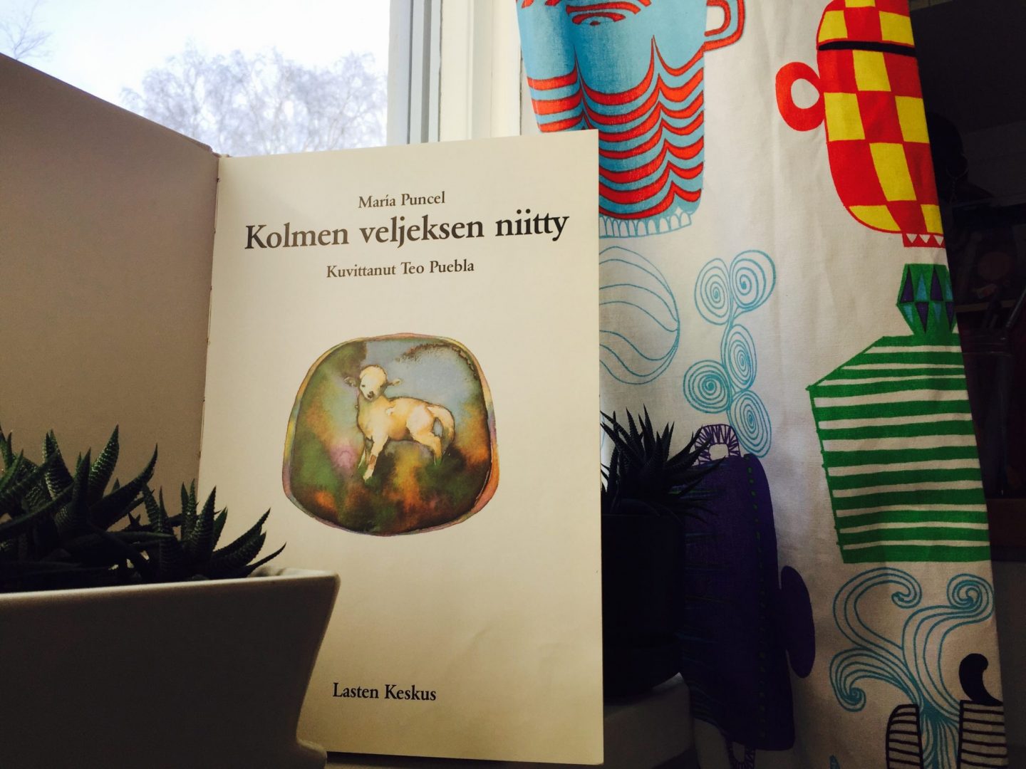 Yksi kuvakirja, jota olemme lukeneet paljon on María Puncelin kirjoittama ja Teo Pueblan kuvittama Kolmen veljeksen niitty. Kirja on aikanaan pelastettu meille Kuhmon kirjaston poistomyynnistä vain ja ainoastaan sen takia, että se kertoo kolmesta veljeksestä.
