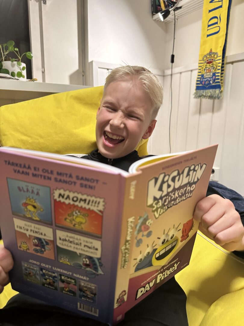 Kuvitus on simppeli, mutta toimiva. Tämä kirja sopii kaikille, jotka tykkäävät nauraa! Minulle jäi mieleen kirjan keskellä oleva sarjakuva, jonka oli tehnyt kirjan hahmo. Se oli todella opettavainen ja kaunis tarina.