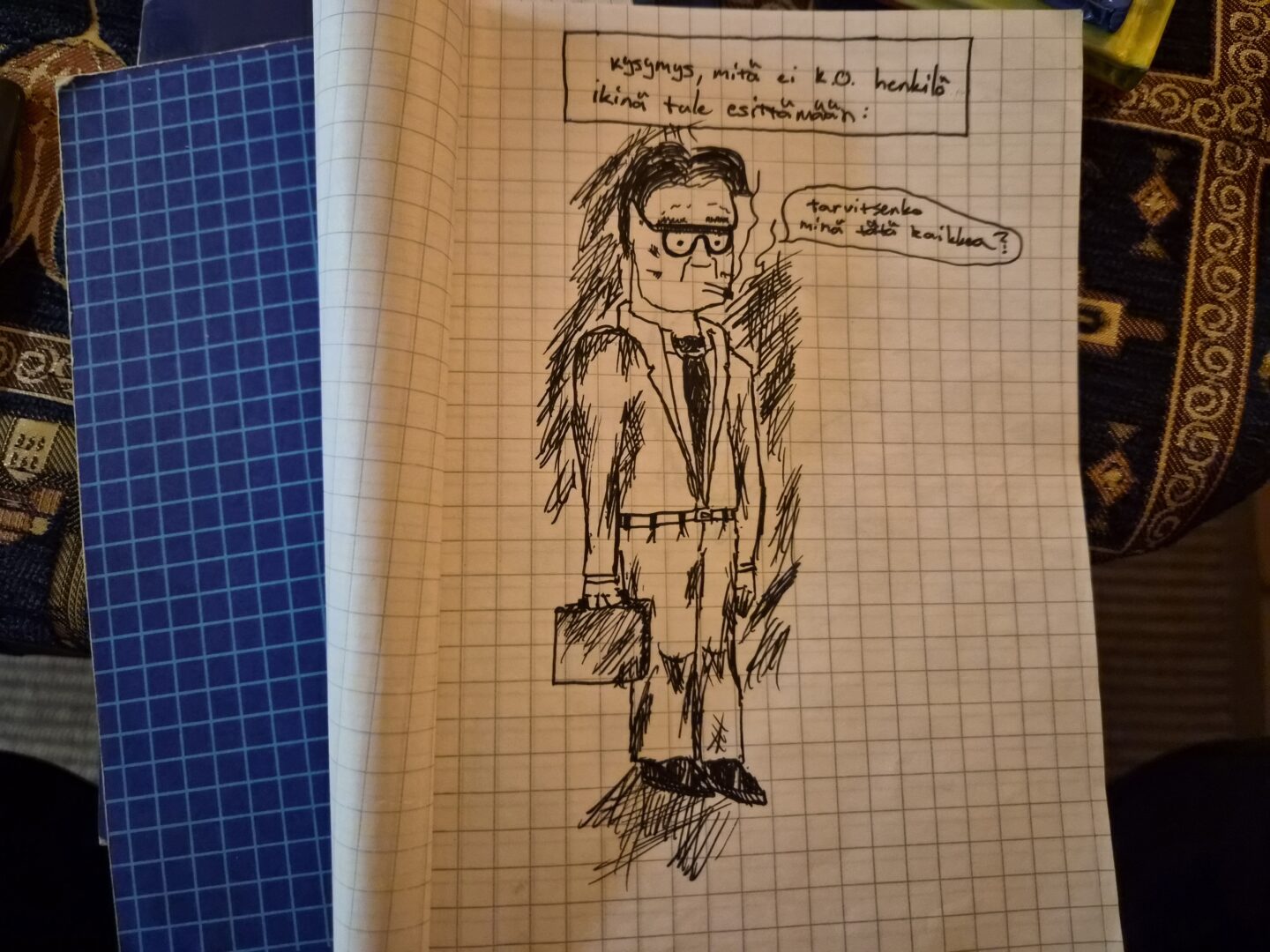 Aidon harrastamisen makuun olenkin päässyt lapseni kautta: metsäliikkis, kansantanssi (ihan oikeasti!) ja uinti ovat olleet kodin ulkopuolisia juttuja. Kotona sitten askarrellaan innokkaasti, mikä on jo itsenäisen harrastuksen tasolla ajankäyttöineen ja välineineen. Olen melko kateellinen siitä, että voi puuhata jotain ilman sen suurempia tavoitteita. Itsehän aloitin juuri Aalto-yliopiston Radikaali luovuus -kurssin, joka on siis askartelua vähän teoreettisemmalla viitekehyksellä, saadakseni uusia ideoita työpaikan AI-juttuihin. Älytöntä. Voisin vaikka piirtää paskasti ja omaksi ilokseni ilman mitään paineita. Kun mainitsin kumppanilleni tästä, hän piti ajatusta erinomaisena.