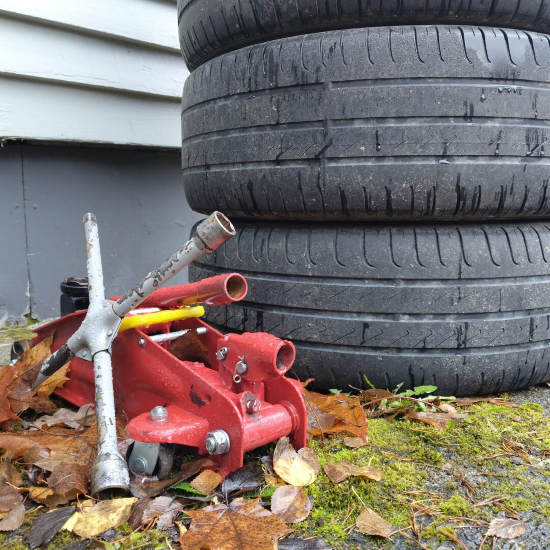 Renkaidenvaihdon opetushetkeen en kaivannut älyllistä haastetta. Oli oikein hyvä, että homma sujui yllätyksittä. ”Tälläisiä ne useimmat hommat on, tylsää pultin kierittämistä”, opetin. Vastapäivään aukeaa, myötäpäivään kiristyy.