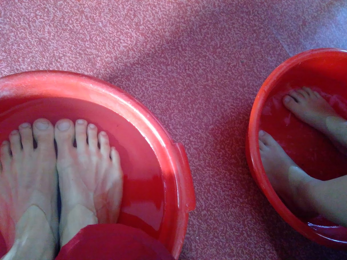 | Eskarilainen sairaana, jäin päiväksi kotiin. Otettiin jalkakylpy ja juteltiin mukavia. Tiedä vaikka olisi syntynyt pojalle lapsuusmuistoja siinä ohessa. |
