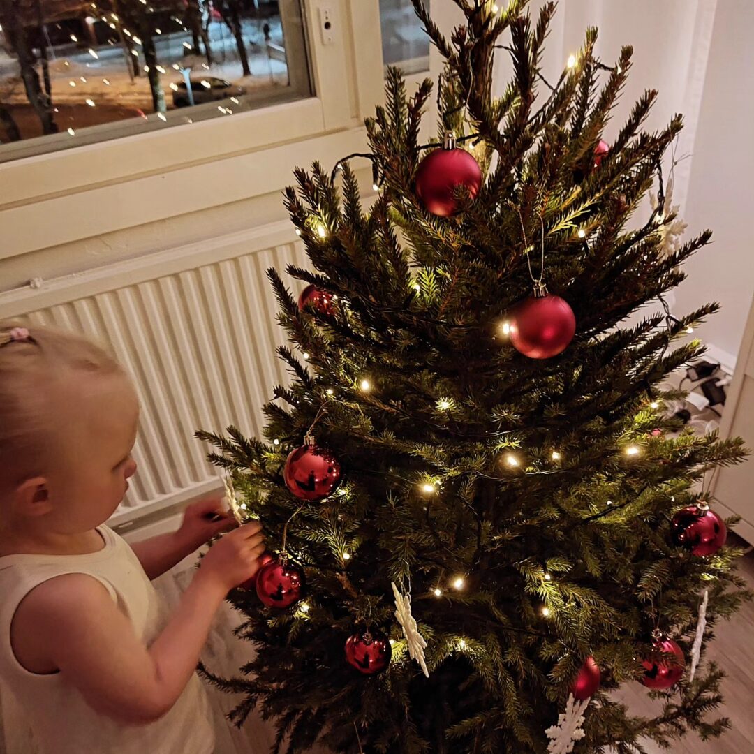 Joulutunnelmaa lähelle aloin päästä, kun katsoin tyttäreni koristelevan kuustamme. Se ei vielä minua juhlatuulelle saattanut, mutta välillisesti kykenin liittymään riemuun. Aatonaattona, uskalsin jo tunnustaa kumppanilleni, kun vietimme aikaa aikuisten kesken, että “Kyllä tämä aika kivaa kuitenkin on.”