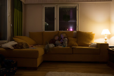 Kun tulen kotiin, on ruoka jo käytännössä valmista ja lapsilauma olohuoneessa leikkimässä. Puoliso lähtee joogaansa, otan ruoan uunista ja annan lapsille. Syönnin ja käsienpesujen jälkeen on kello jo alkuillan partaalla, enkä ole oikein löytänyt sitä kotimoodia. En oikeastaan tiedä miten noilla pennuilla on päivä mennyt, enkä sitä missä vaiheessa kotityöt ovat. Kodin metatyölle* ei ole ollut aikaa eikä paikkaa, joten olen aivan pihalla ja on hankala tarttua mihinkään hommaan.
