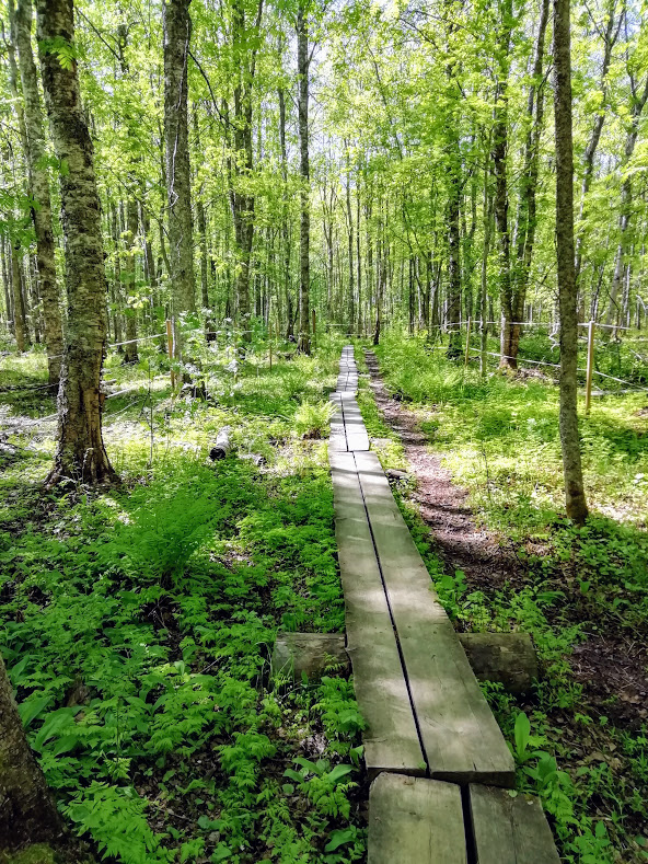 Maleksin tornin suuntaan. Koivikossa huusivat käpytikan poikaset. Osa pitkospuista oli viimeaikaisten sateiden vuoksi veden peitossa. Pysähdyin katselemaan kiikarilla myyrää, joka puuhaili omiaan muutaman metrin päässä pitkospuista. Idänlehtikuoriaiset – opin lajin pari päivää sitten facebookin Suomen ötökät -ryhmästä – söivät rantaleppien lehtiä. Laji on Itä-Suomessa joskus runsaslukuinen, mutta ei saa aikaan sen kummempia metsätuhoja.