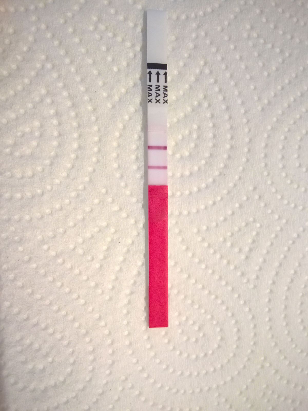 Ai niin. Tekstiviesti. Se on tullut vaimolta. Viestissä ei ole tekstiä, vaan kuva. Kuvassa on valkoinen tikku, jossa on kaksi hohtavanpunaista viivaa.