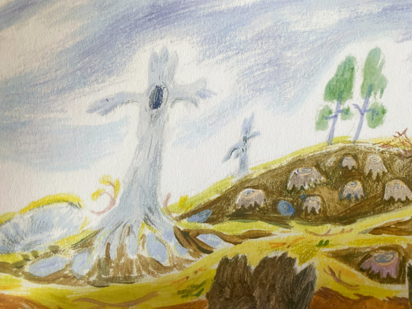 Yksityiskohta Johanna Lumpeen lastenkirjasta Matka ikimetsän sydämeen.