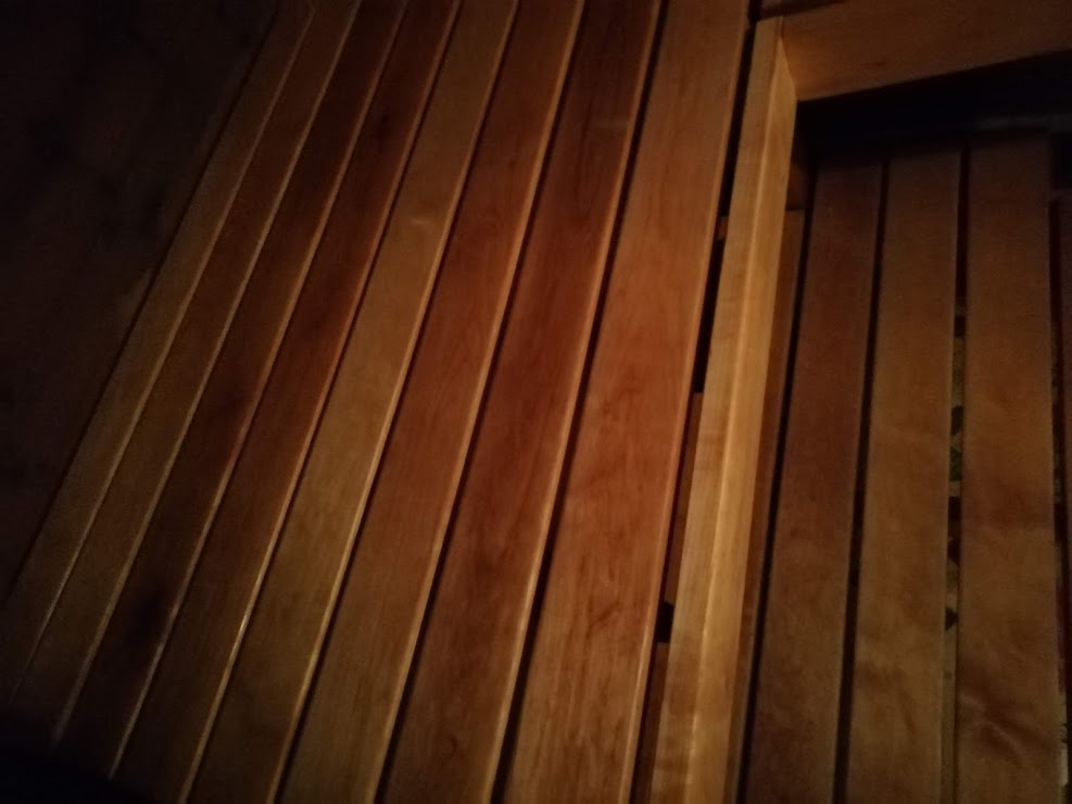 - ylälauteen etäisyys katosta: 101 cm (vanhojen lauteiden 95 cm oli miehen mielestä nafti)