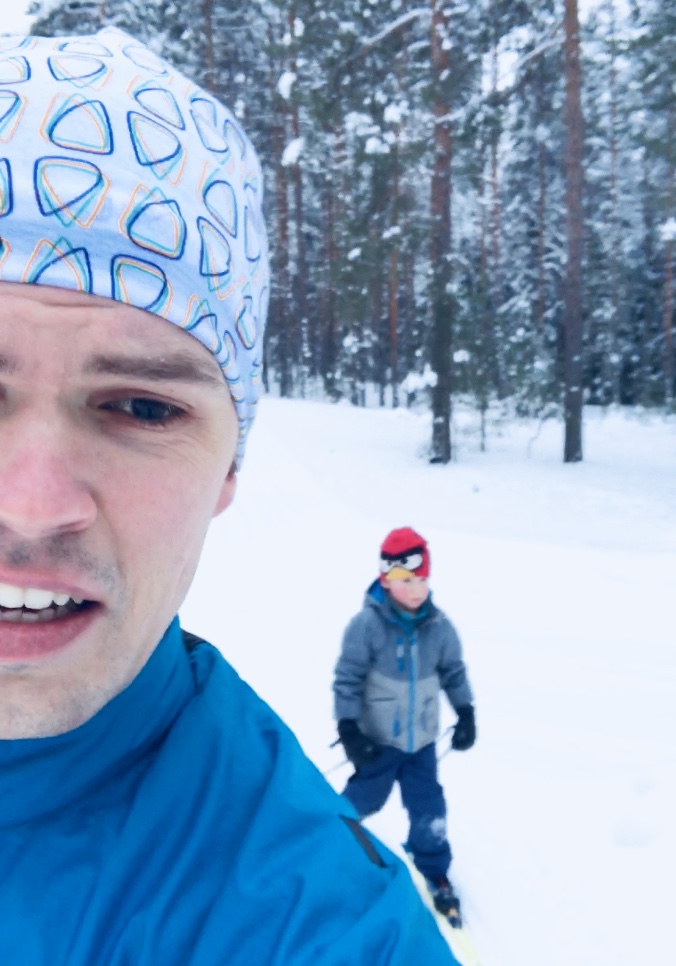 Ja nyt siis hiihtolomalla ladulla, alkuun teinin ja eskarilaisen kanssa. Ensimmäinen havainto oli, että tässä on jotain kovin tuttua ja jotain niin vierasta. Toiseksi tajusin, etteivät lapseni osaa luistelutyyliä! Kolmas havainto oli vanhempi pariskunta, joka posket punakoina porhalsi meitä kohti autuaan reipasta vuoropotkua. Kohdalla herra kääntyi kuopukseeni päin leveästi hymyillen: