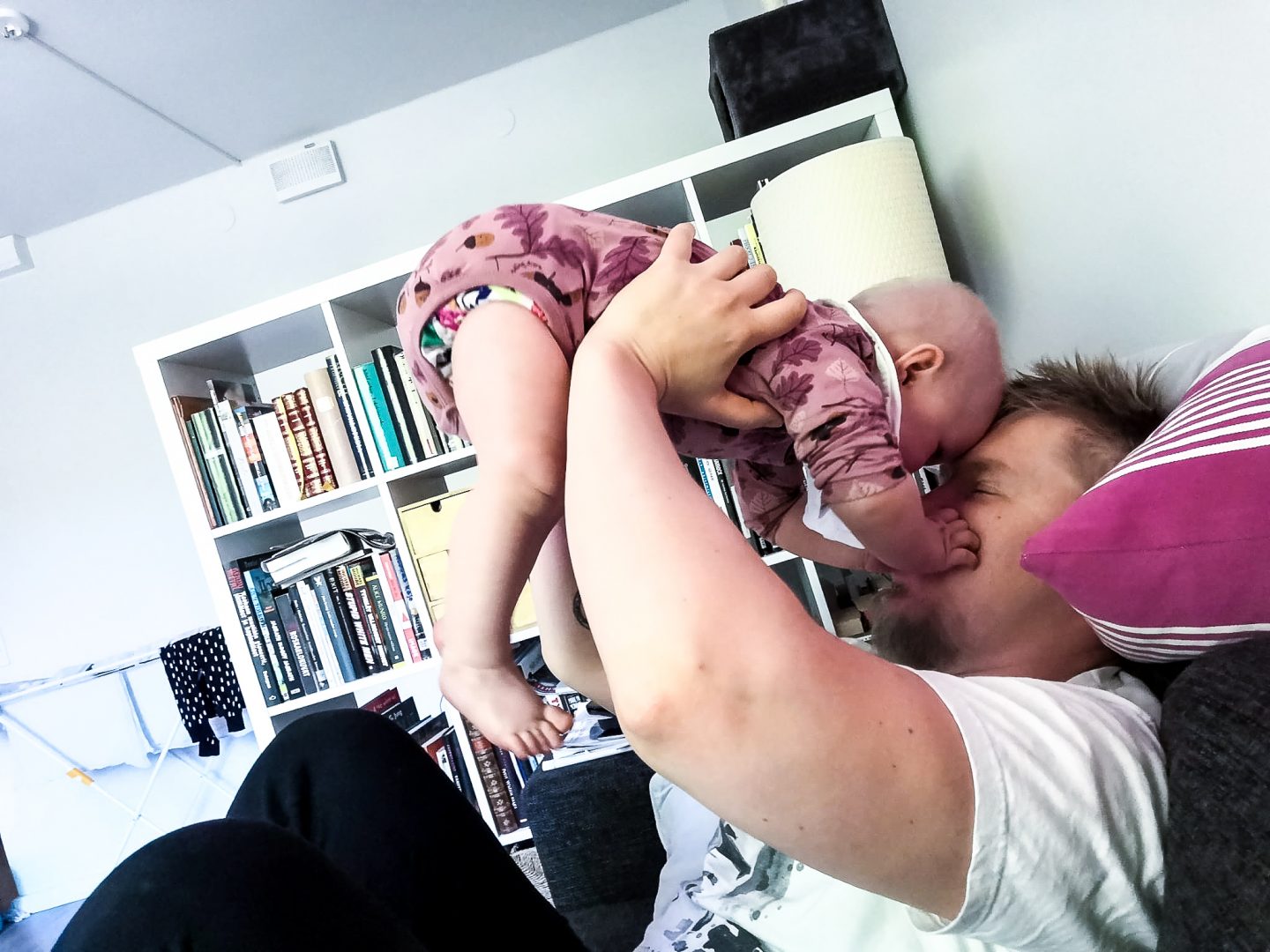 Toisinaan pysähdymme H:n kanssa ja käsitämme sen valtavan muutoksen, jonka keskellä olemme. Kuin olisi pyörremyrskyn silmässä tajuamatta sitä. Jotain, että päivät ovat samanlaisia, mutta elämä silti muuttuu hurjaa tahtia: ympäristö, puhe, ruoka, mielikuvitus, leikit, sosiaalisuus, huumori – viimeisimpänä kävely tällä viikolla.