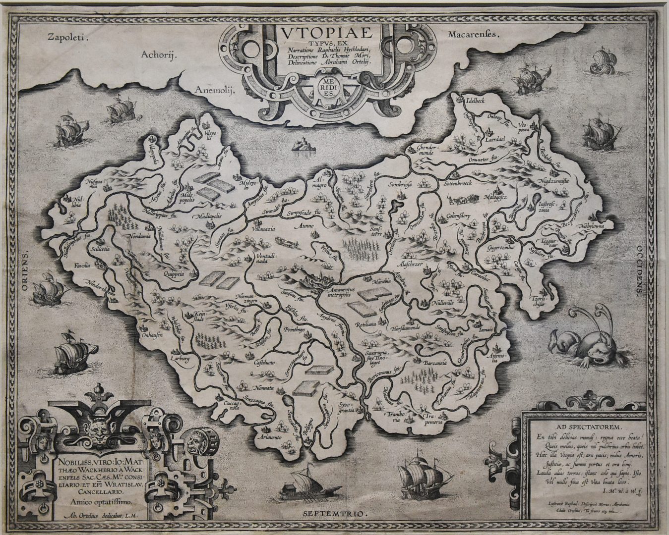 Kaart van Utopia (1595-96 kopergravure) Abraham Ortelius