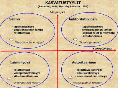 Edellisen nelikentän tavoiteneljännes oli vasemmalla ylhäällä, tässä se on oikealla ylhäällä. Esimerkiksi käytöstavat kuuluvat selvästi x-akselin pluspäätyyn, mutta niitä voi opettaa lapselle lämpimästi tai kylmästi.