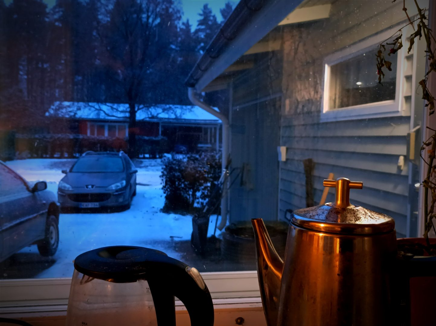 Pikaiset aamupuurot, rytkyt ylle, ja räntään. Kotien lämmöstä koulujen ja päiväkotien pihoille. Miksi on pakko? sanoo lapsi, ja Siksi on pakko, aikuinen. Jossain vaiheessa kehityskaartaan keksii ihminen tehdä asioita joita ei halua, ja vetääpä vielä lähimmäisensä muassaan. Minusta itsestäni tuntuu, etten vielä tunne päässeeni irti lapsuuden kylmiin ja märkiin ja pimeisiin marrasaamuihin kohdistuvasta inhosta – aamu-unisena varsinkaan.