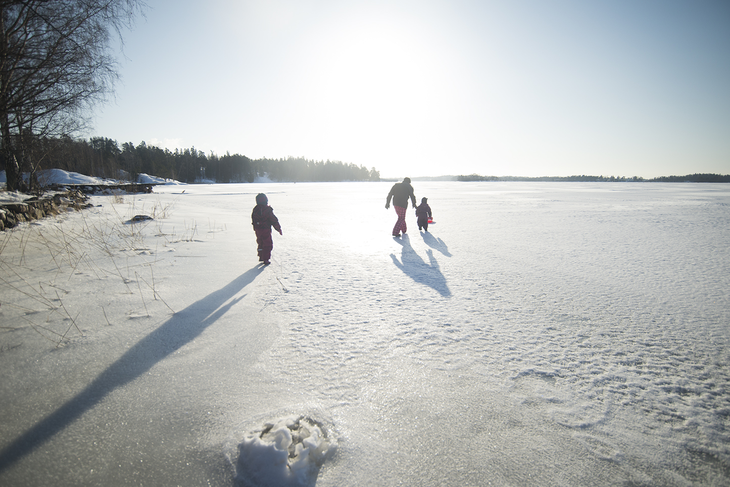 Lumi on kevyttä, pulkat luistavat siinä leikiten.