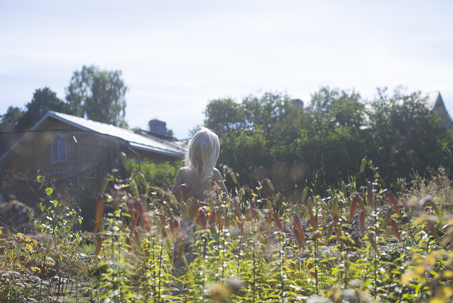 Vietetään iltapäivä takapihan kallioilla. Aurinko lämmittää ihoa, kesäinen lämmin elokuu. Varjoliljat kukkivat oranssina, heitän ovat raskaina siemenistä. Maksaruoho on juuri puhkeamassa kukkaan ja pihlajan marjat ovat muuttumassa syvän oranssiksi. Pilvet lipuvat taivaan yllä jättäen valkoista hattaraa jälkeensä. Kallio on lämmin jalkojen alla ja mehiläiset surisevat siankärsämön kukkasissa.
