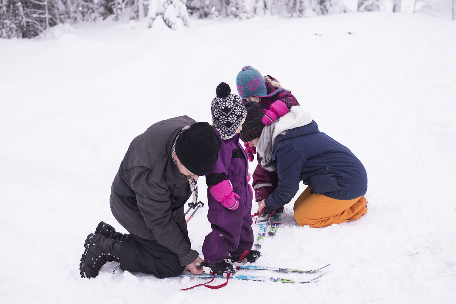 Kuvituskuvina vielä tunnelmointia joululomalta, kun lapset oppivat hiihtämään.