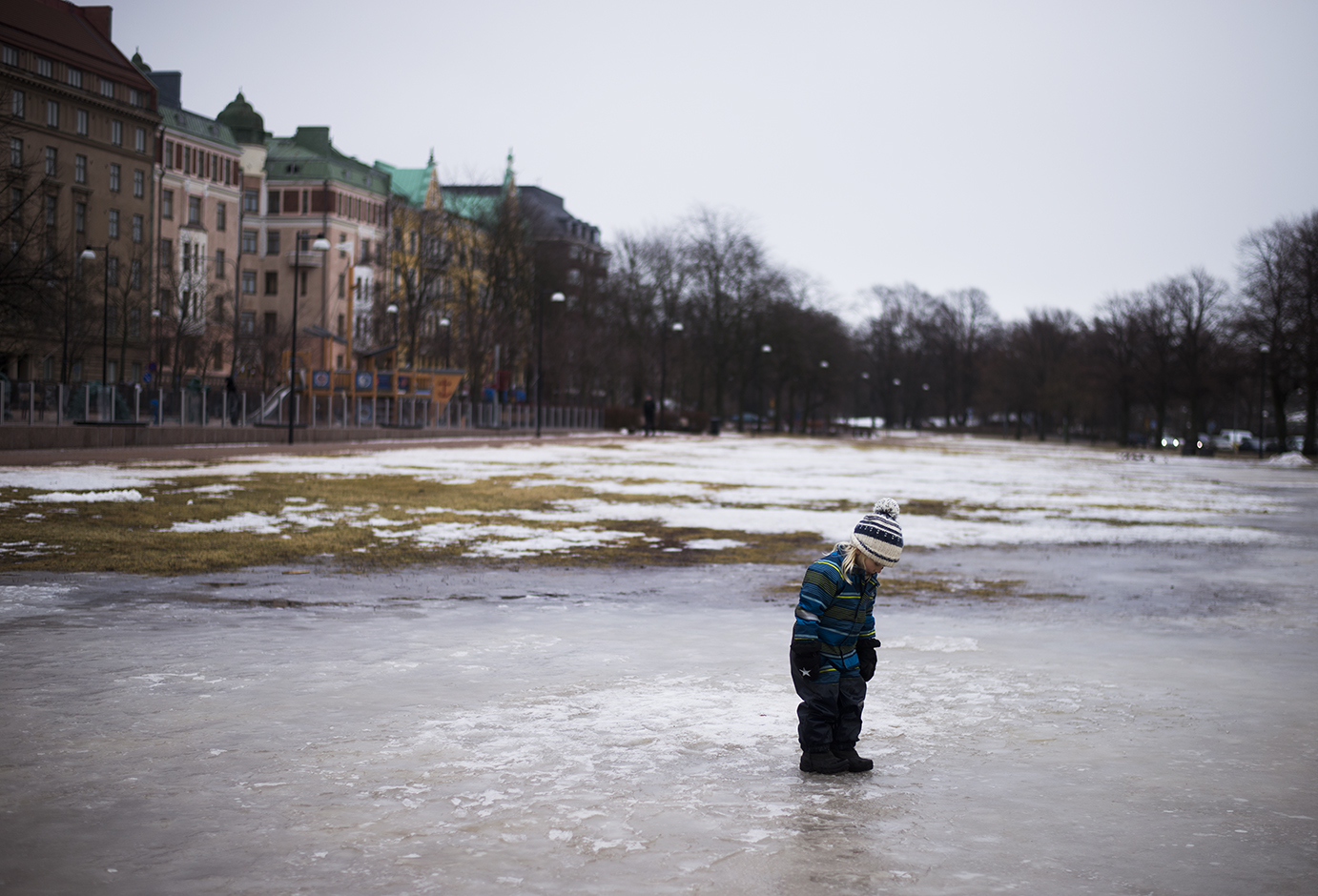 Lapset katselevat hiljaisina ja uteliaina kaupunkia ympärillämme. Ihmisiä kiirehtimässä kuka minnekkin, ratikkaa joka ajaa ohitsemme, pieniä putiikkeja, antiikkiliikkeitä, kahviloita. Jäinen meri näkyy jo. Kapteeninkadun keltaisesta kivitalosta aukeaa ikkuna ja vanha mies kumartuu ulos tupakalle. Sora rahisee jalkojemme alla ja mäen alla odottaa leikkipuisto.
