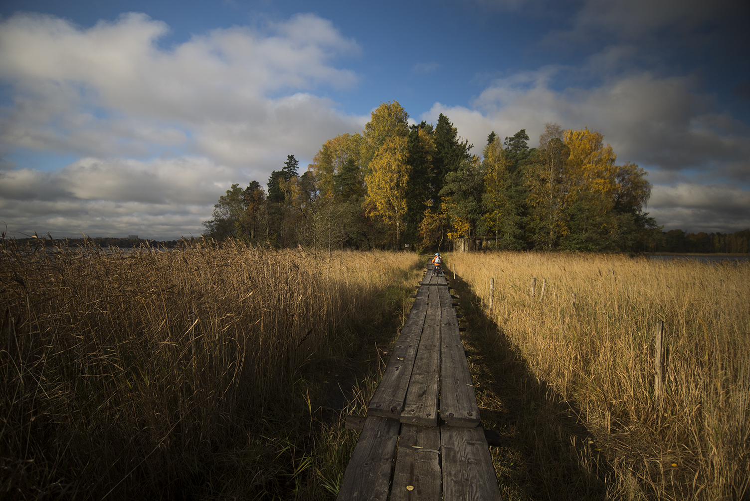 Kotimatka pitkin syyslehtien keltaiseksi peittämiä tienpientareita. Aurinko maalaa puiden viimeiset lehdet teräviksi ja kirkkaiksi, ne piirtyvät tummana leijuvia pilviä vasten selkeinä ja kauniina. Hetkeä myöhemmin löydän itseni istumasta naapurin keittiön pöydän ääressä. Talon kaikki naiset siinä, yhden pöydän ääressä. Lapset ulkona keskenään. Keittiön seinistä kimpoilee nauru. Puhutaan puhelimista, puhutaan historiasta. Puutalot eivät jätä meitä. Puutaloon me kuulumme.