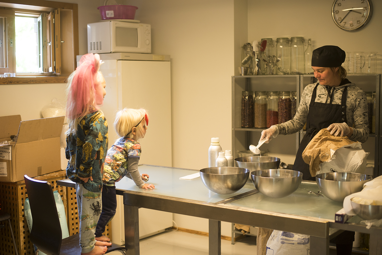 Seison lasten kanssa katsomassa miten tuo minullakin testissä oleva vegaaninen deovoide, suolasaippua, palashampoot ja pitsikynttilät syntyvät Kaikki tehdään alusta asti itse täällä Meilahden sydämessä.