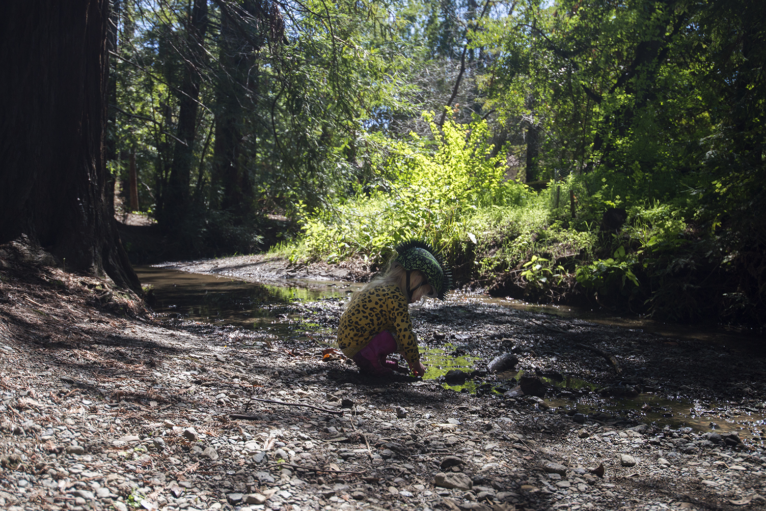 Mutta nyt on vielä helppoa. Joenuomassa solisee vettä, ei paljon, ei lainkaan paljon verrattuna vuoden takaiseen, mutta vähän. Vuosiin tuossa ei ollut vettä lainkaan. Vuosiin ei Kaliforniassa satanut pisaraakaan. Ei edes talvella. Nyt on kahtena talvena taas satanut. Ensin liikaa, nyt menneenä talvena kai normaalisti. Satanut tarpeeksi, että luonto palautuu, siemenet täyttyvät nesteellä, maa kuohkeutuu ja puut ehtivät imeä itseensä ravinnon koko kesäksi.