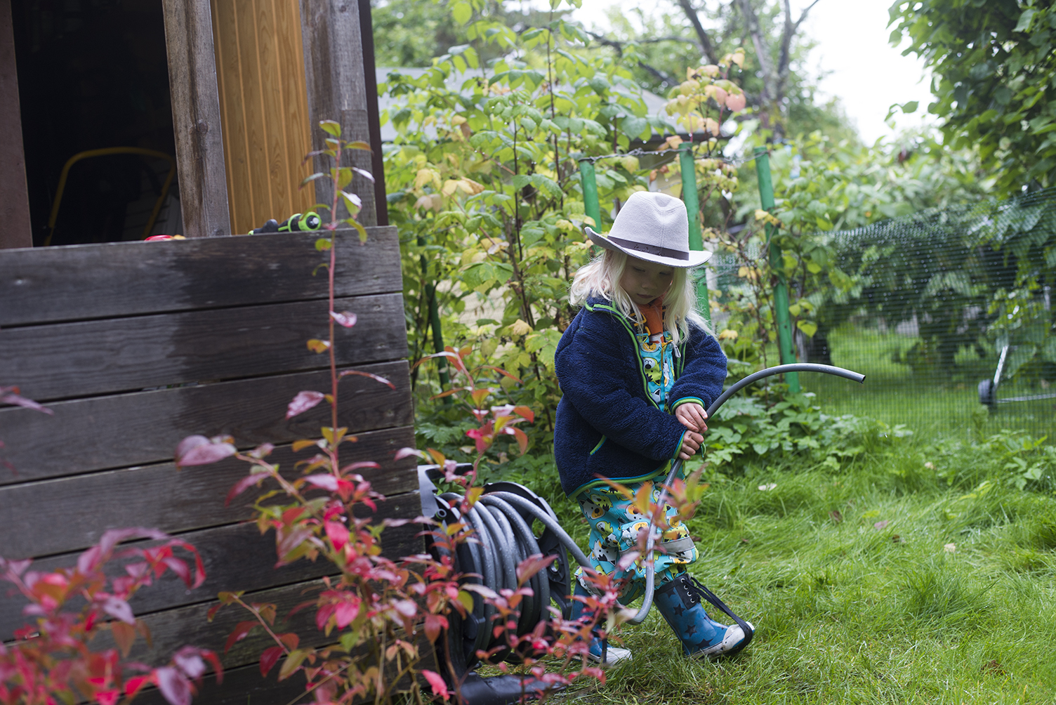 Pidän itse lapsiamme mukana hyvin usein töissä. Kun puutarhasesonki on päällä ja teen sen alan töitä (puutarhasuunnittelua ja fyysistä puutarhurin työtä) lapset ovat aina olleet mukana. Vauvana he olivat selkääni sidottuna tai makoilivat viltillä vieressä, tai nukkuivat rattaissa. Mitä isommaksi he käyvät sitä helpomaa heidän kanssaan näissä töissä on. Nykyään heistä on välillä jopa ihan oikeaa konkreettista hyötyä. Mutta he viihtyvät myös vallan mainiosti omia asioita puuhtaten pihojen ja puutarhojen nurkissa samalla kun minä teen “oikeita” töitä.