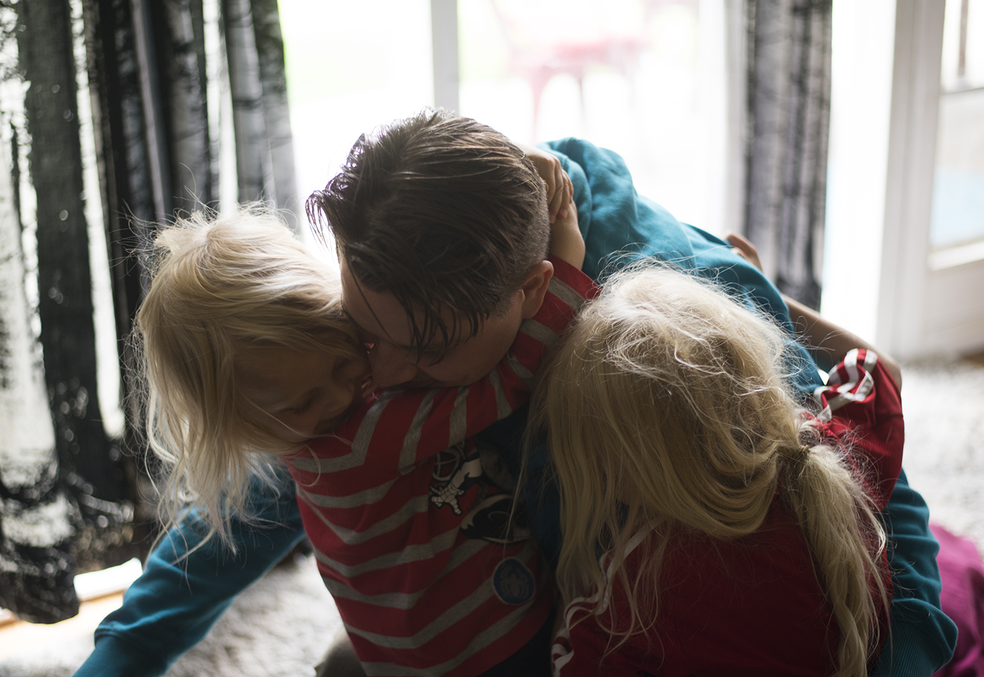 Hän on saanut/joutunut (kummin sen nyt haluaa nähdä) rakentamaan oman isyytensä tyhjästä. Päättämään millainen isä hän haluaa olla. Kaikkeen ei voi vaikutta, ei vaikka haluaisi. Puoliso ei ole se isä, joka jaksaisi nousta aamulla aikaisin ja olla samantein hyvällä tuulella. En tiedä haluaako hän edes olla sitä, mutta se on vain sula mahdottomuus toteuttaa. Hän on se isä joka on hieman aamuäreä, mutta samalla se isä jonka viereen lapset aina saavat aamuisin kömpiä. Hänen päällään saan möyriä ja hyppiä. Hän on se isä joka ei koskaan lakkaa halaamasta tai antamasta suudelmia päälaelle.