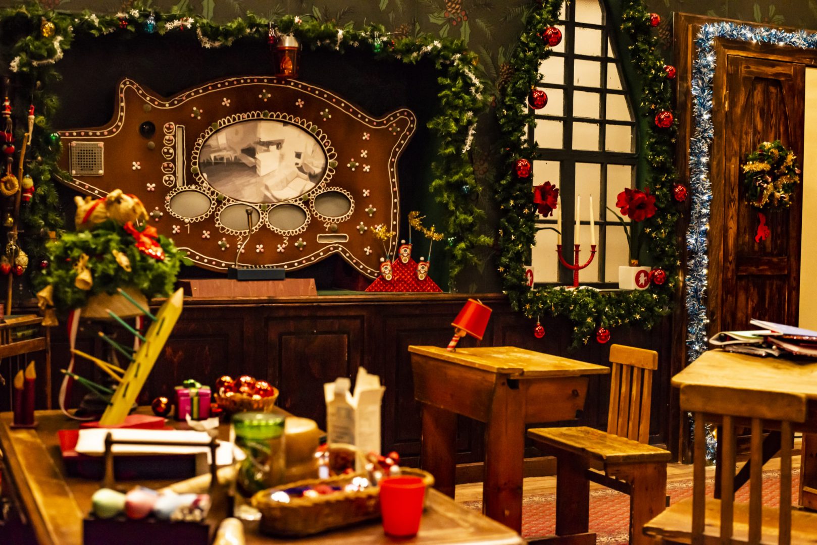Seison keskellä joulumaailmaa, ympärilleni levittyy joulukoristeita, lahjapaketteja, havuköynnöksiä ja ainakin mielessäni kuulen kilikellojen kilinää. Mistelitapetit seinillä luvat oman tunnelmansa ja seinustalla oleva suuren piparipossun muotoinen ihmislasten urkintamasiina vakuuttaa pätevyydellään kyynisemmänkin aikuisen.