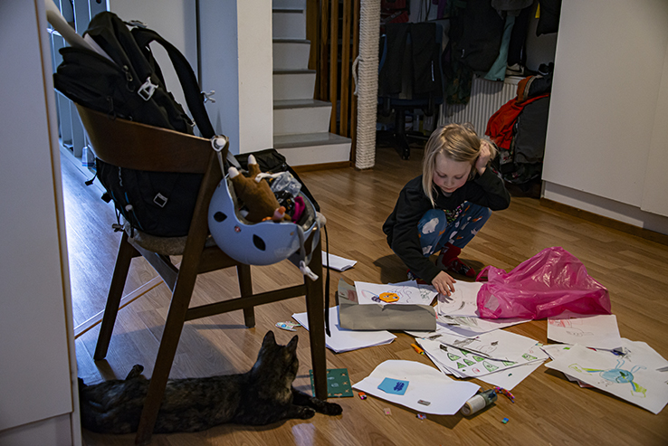 Istumme päivällispöydän ääressä. Ruoka on jo syöty ja Esikoinen tekee läksyjään. Englannin lukuläksy on nopeasti tehty, kirja jonka hän koulusta sai on oikeasti hänelle aivan liian helppo, lukukuplaan lapsi lukeekin jo ihan oikeaa paksua kirjaa, ei enää kuvakirjoja. Esikoinen nostaa helmitaulun pöydälle ja alkaa laskea matikkaa. Kuopus tokaisee minulle sveitsinsaksaksi: “entschuldigung”, ja poistuu vessaan.