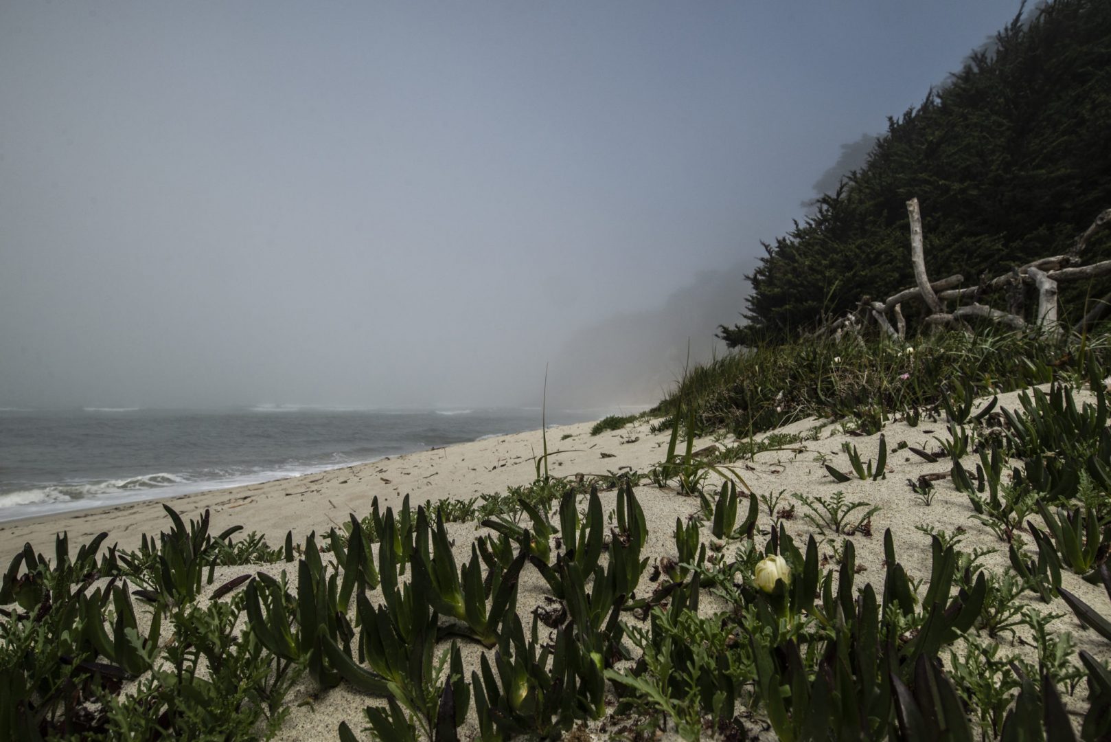Mitä lähemmäs ajan kohti Moss Beachin kylää, sitä vähemmän taivaalla näkyy sinistä.