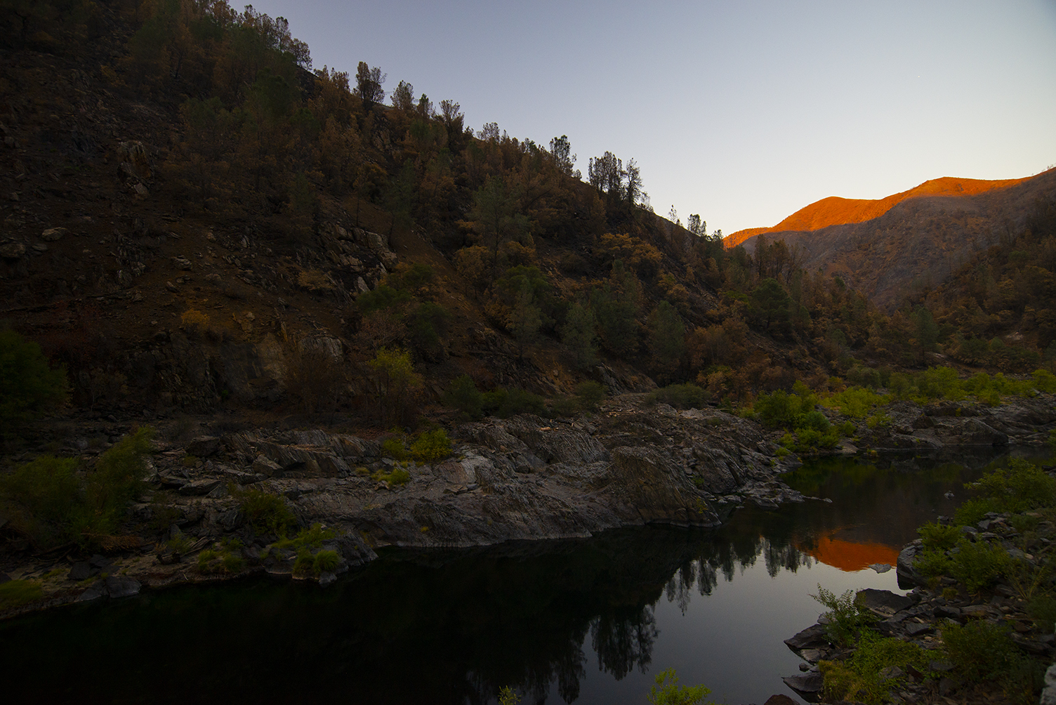 Seisomme joen rannalla auringon laskiessa. Katselen miten edellisen illan näytös toistuu: kukkulat värjäytyvät kullankeltaiseksi. Näky säväyttää uudestaan ja uudestaan. Mietin tottuisiko siihen koskaan.