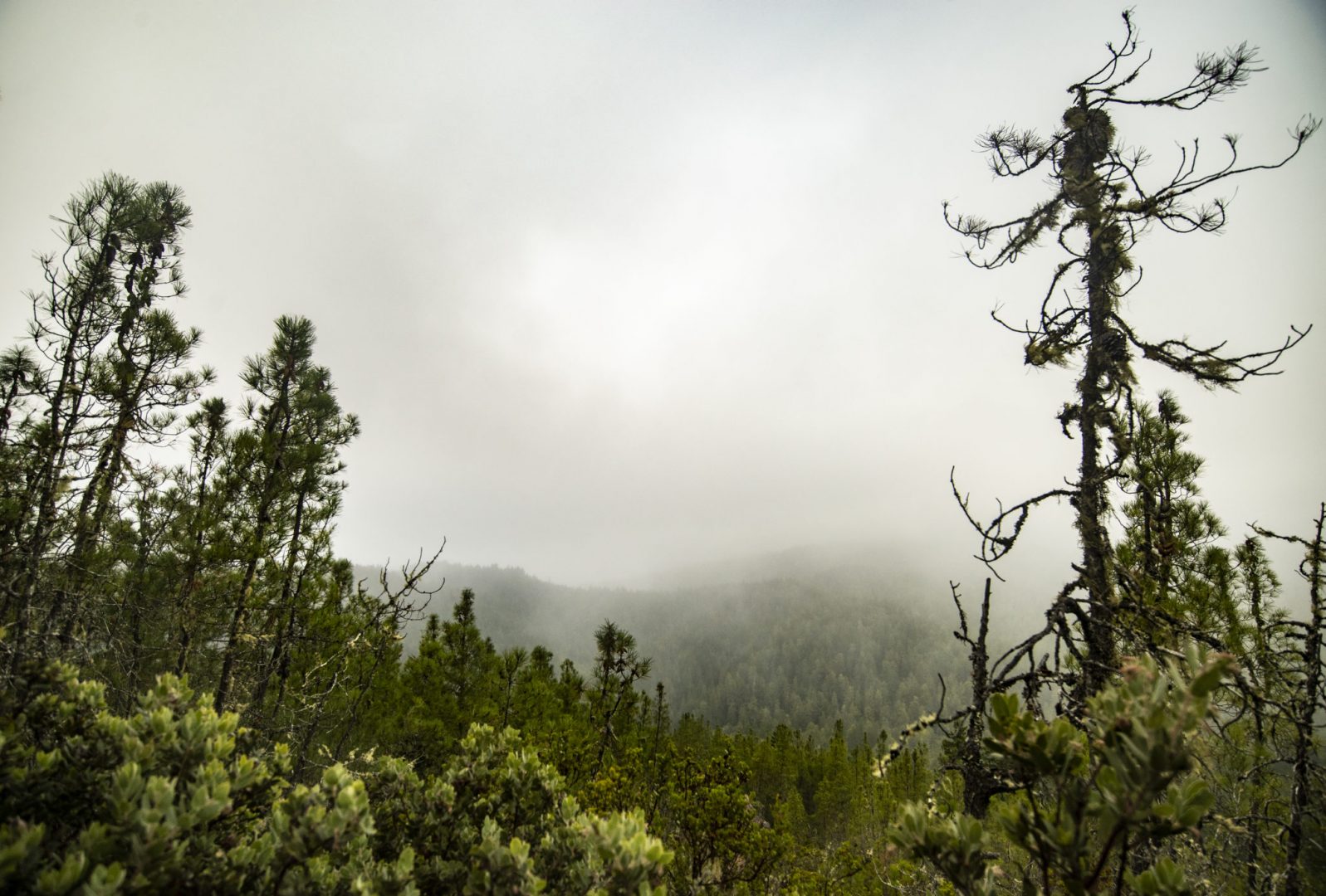 Näkökentän laitamilla, lähes jättimäisten punapuiden varjoihin hukkuneena on telttamme jossa lapset nukkuvat syvää unta. 8 kilometrin kävely korkealle kukkulan laelle, läpi sumun ja naavaoksaisten puiden teki tehtävänsä ja lapset siirtyivät unimaailmaan nopeammin kuin yleensä telttaretkillämme.