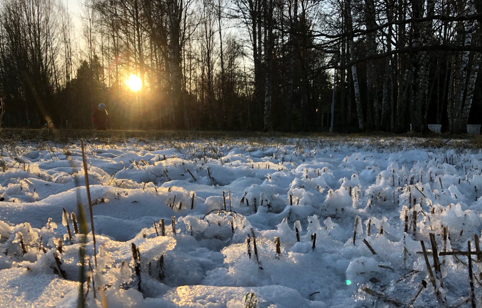 Aurinko paistaa, ulkona on ehkä kaksi astetta pakkasta.
