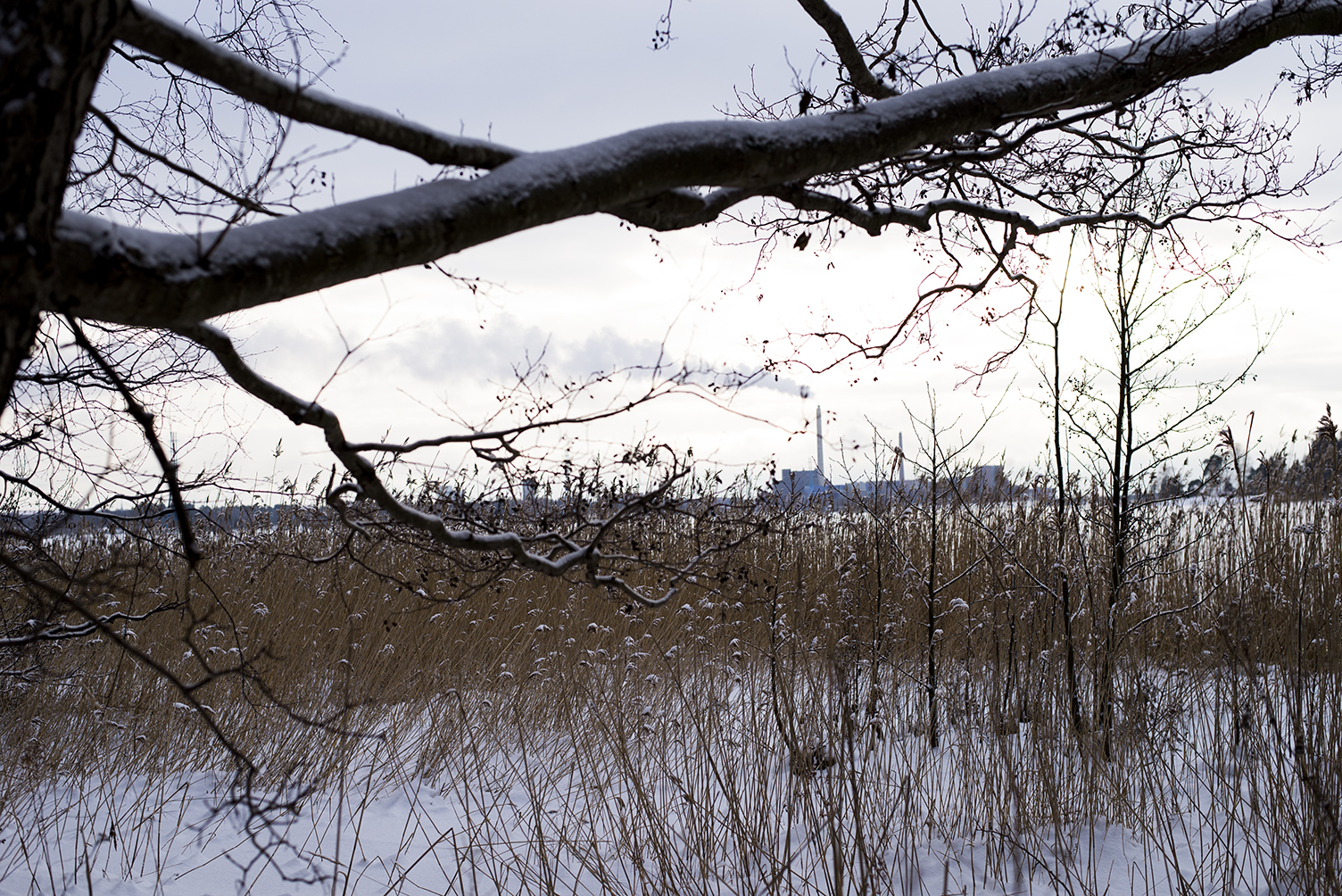Pakkasta muutama aste, lunta maassa. Pilvipeite rakoilee ja harmaan massan seasta näkyy pieniä kaistaleita vaaleansinistä taivasta. Pilven reuna värjäytyy kultaiseksi.