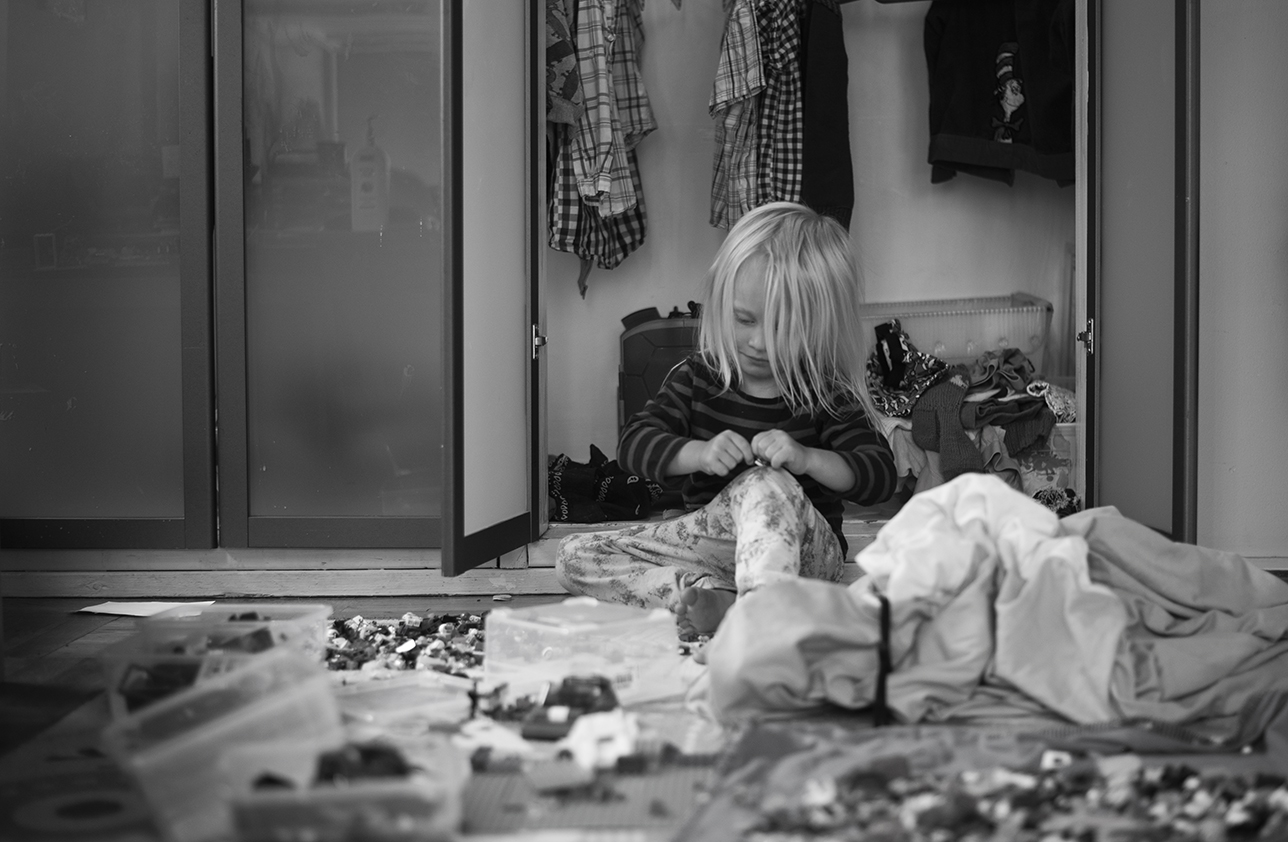 Huomaan Kuopuksen hävinneen aamupalapöydästä ja käyn kurkistamassa lastenhuoneen ovelta: lapsi leikkii tyytyväisenä legoilla. Jään hetkeksi nojaamaan ovenkarmiin, en raski keskeyttää lapsen keskittynyttä leikkiä, en vaikka pitäisi jo joutua kauppaan.