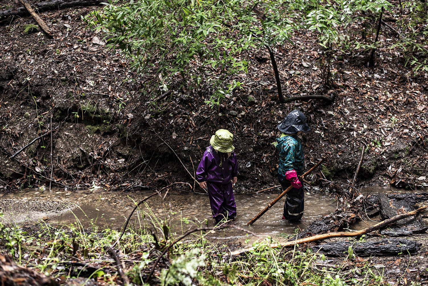 Hakiessamme Esikoisen koulusta tuttu äiti kysyi mitä teen lasten kanssa nyt iltapäivän kun sataa vettä. Sanoin meneväni metsään. Äiti katsoi minua hetken ja purskahti nauramaan. “Hetken luulin, että olet tosissasi “ hän nauroi. Vakuutin, että ihan oikeasti, me menemme metsään. “Mutta siellä sataa. Eivät kai sinun lapsesi oikeasti voi pitää sateisesta metsäretkestä, sielällähän kastuu, ja on kylmä, ja kivetkin ovat liukkaita.”