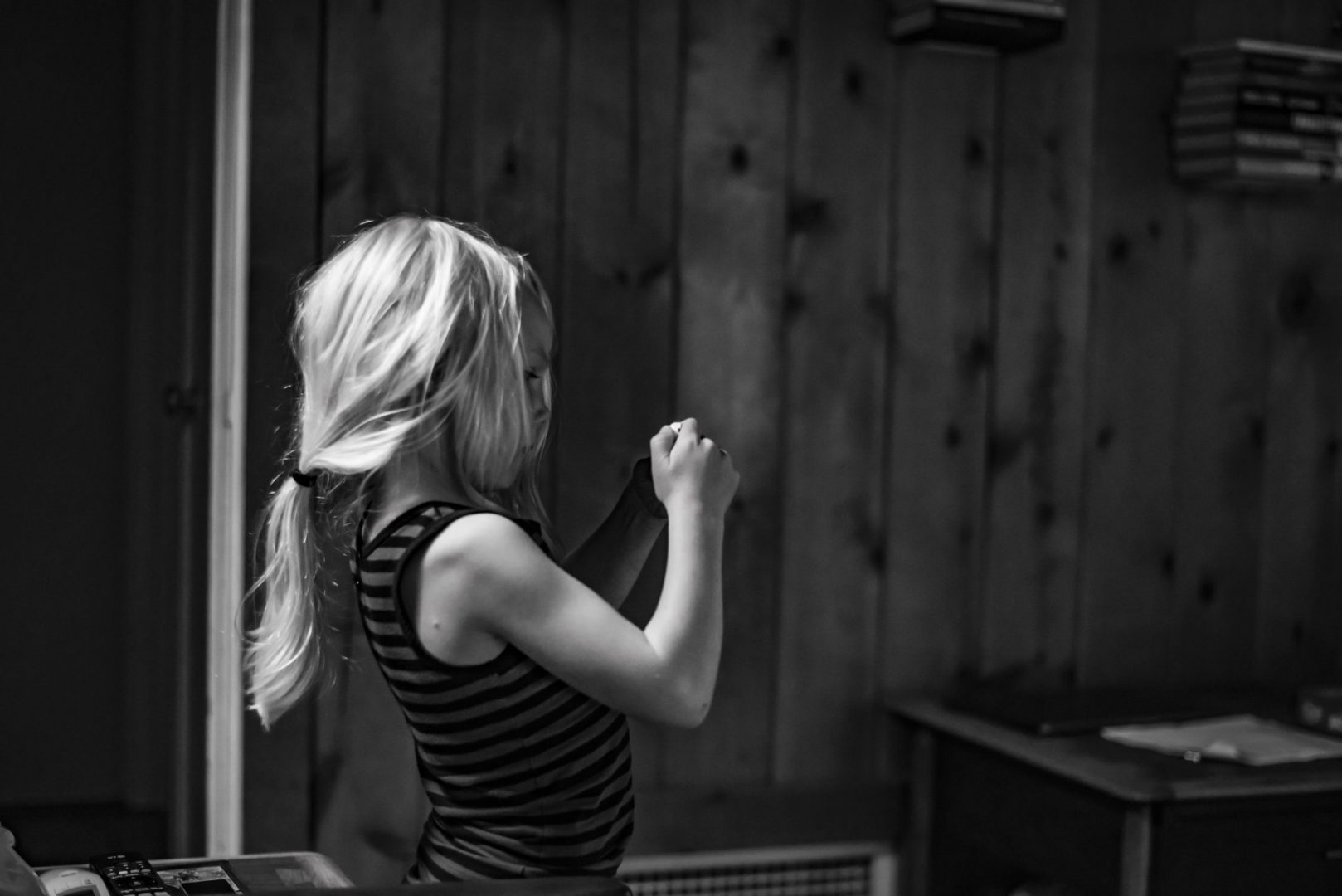 Sen jälkeen se vaeltaa pitkin asuntoa, hiljaa mutta varmasti edeten, lakaisee pienellä harjallaan yötä pois nurkista.
