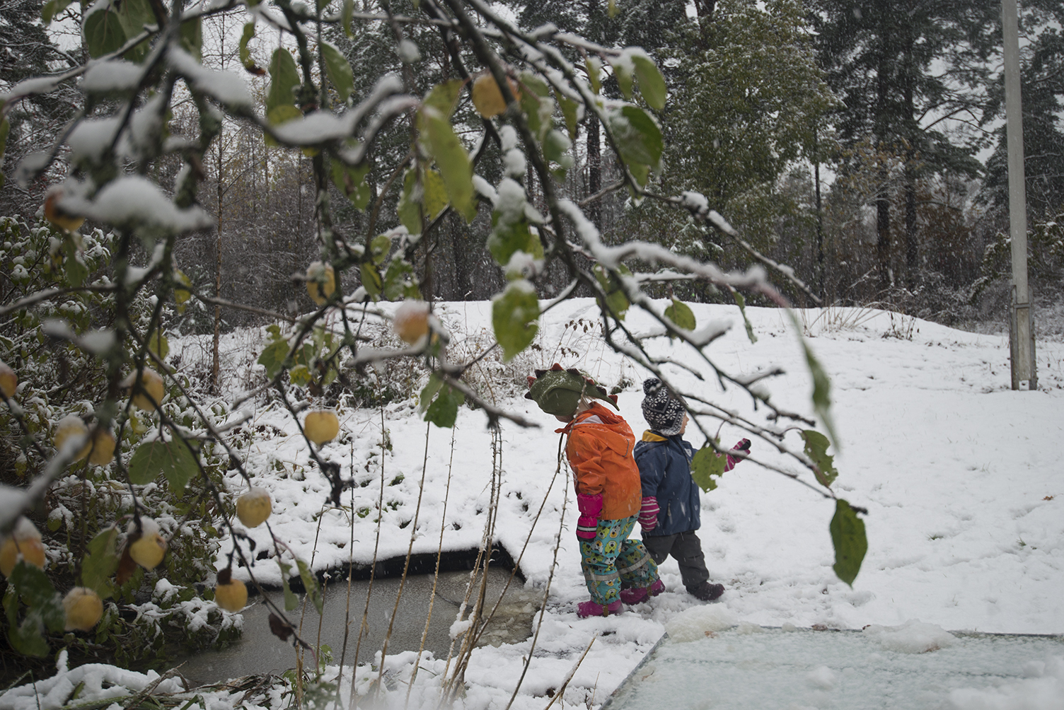 Kerhossakaan lapset eivät ulkoile jos sataa. Vettä tai räntää, oikeasta aidosta lumisateesta en tiedä, haluan uskoa, että silloin ulkoilevat. Kun tämä selvisi minulle luovuin helposta ajatuksesta viedä ja hakea lapset autolla niinä päivinä kun sataa. Me kävelemme, koska muuten mistään ei tule mitään kerhon jälkeen. Ellei ennen lounasta ole saatu sisään vähintään tunnin ulkoilua, ei ruoka maistu, lasten keskittymiskyky on nolla ja riitelyherkkyys sata.