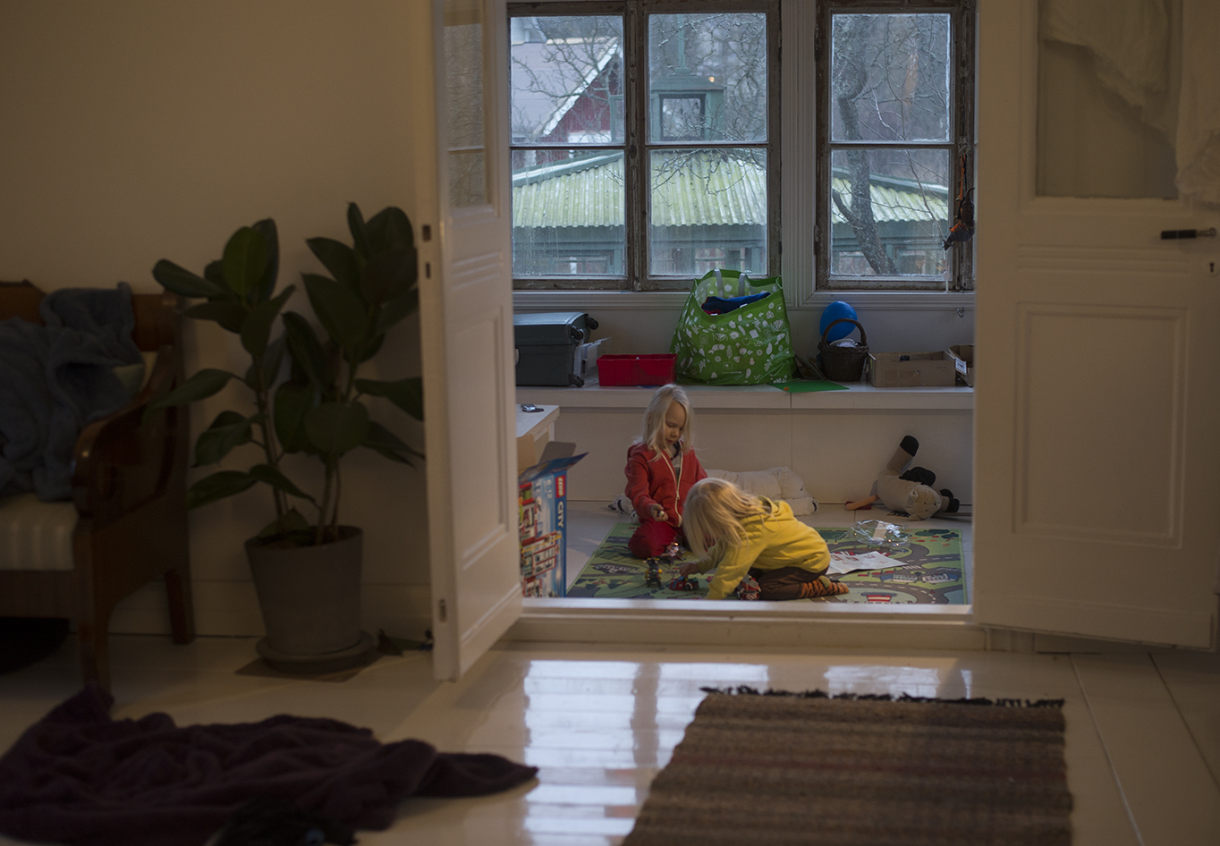 Puoliso lähti aamulla töihin, minä jäin lasten kanssa kotiin.