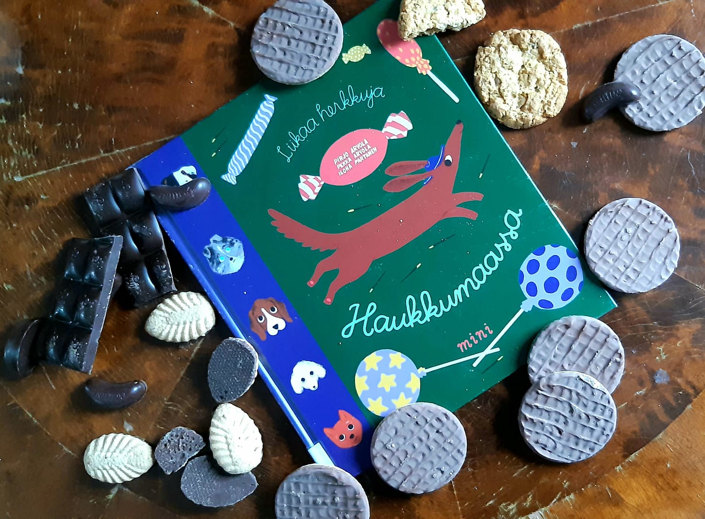 Miksei syömisen taitoa harjoittelisi lasten kanssa myös sadun keinoin? Psykoterapeutti, kirjallisuusterapeutti Silja Mäki suosittelee tähän tarkoitukseen Pirjo ja Pekka Arvolan tuoretta lasten kuvakirjaa Liikaa herkkuja Haukkumaassa (Mini Kustannus, 2020). Kirjassa koiranpennut löytävät ojaan ajaneen herkkurekan lastin ja ahmivat itsensä kipeiksi. Tarina on hauska satuseikkailu, ei sormi ojossa opettava kertomus. Sitä voi käpertyä lukemaan sohvannurkkaan yhdessä lasten kanssa jutustellen.