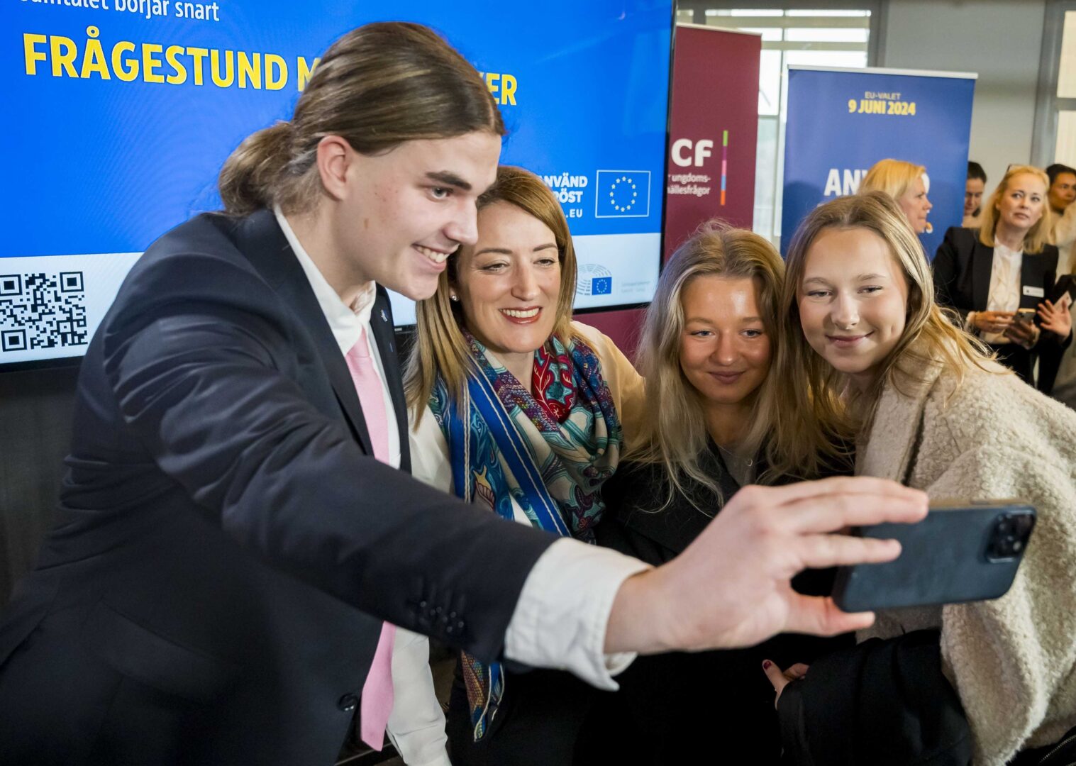 Ruotsalaisnuoria tapaamassa Eu-parlamentin puhemies Roberta Metsolaa