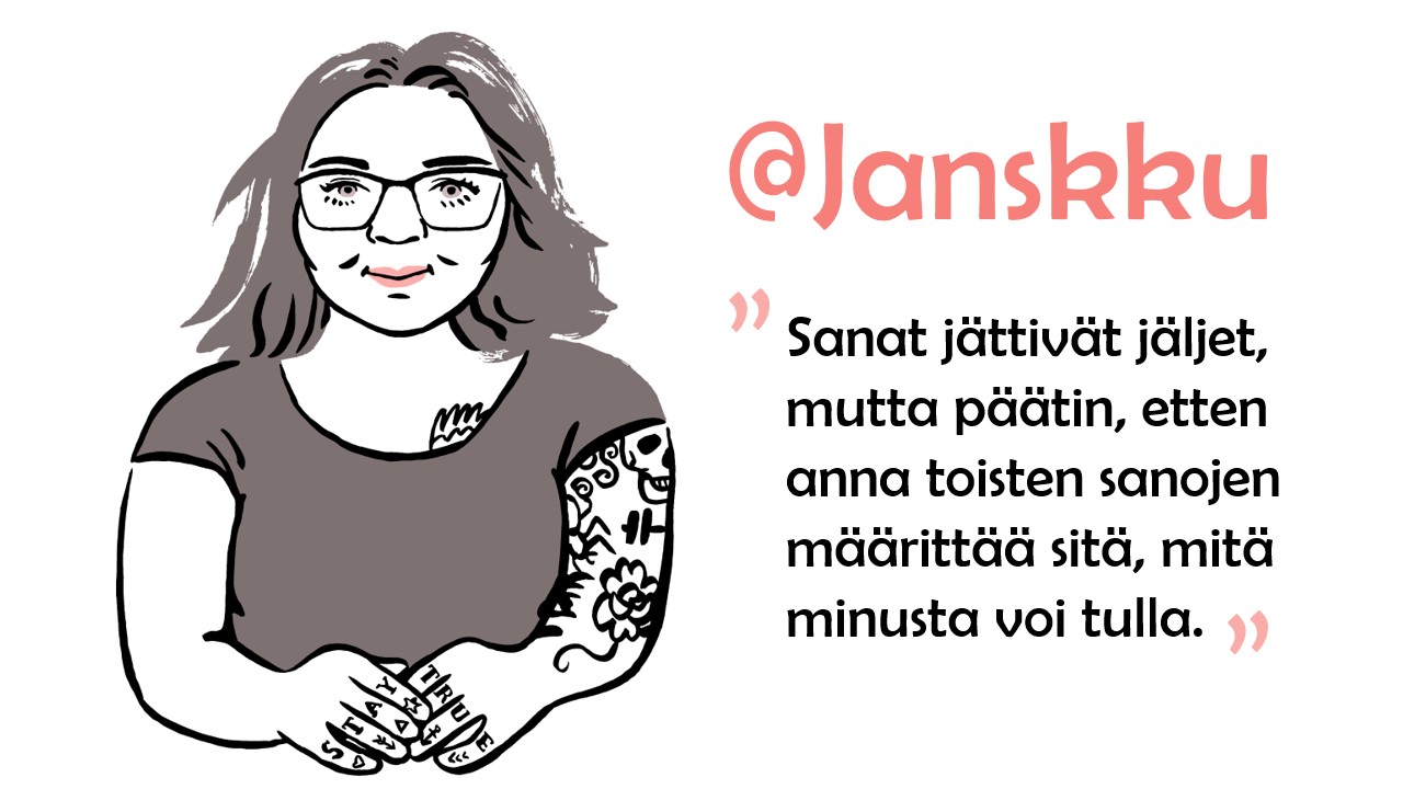@Janskku @Janskku on kaksikymppinen oululainen, joka työskentelee sosiaali- ja terveysalalla. Hän pitää jälkihuollon ohjaajaansa yhtenä elämänsä tärkeimmistä aikuisista. Lastensuojelu on alun perin tullut hänen elämäänsä yksinhuoltajaäidin alkoholiongelman vuoksi. Hän on asunut veljensä kanssa sekä laitoksessa että sijaisperheessä ja muuttanut alaikäisenä kauas lapsuuden perheestään, koska ei kestänyt olla liian lähellä. [caption id="attachment_32322" align="alignnone" width="300"]Kuva: Aino Sutinen[/caption]